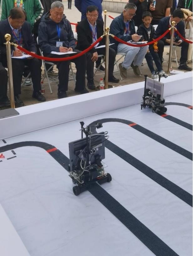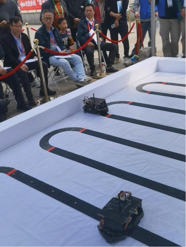 本次大赛以“播种机器人”为主题,赛事要求参赛作品在室外环境实现全程自主作业,既要保证播种精度,又要兼顾作业效率,对机器人的综合性能提出严苛要求。HENAU_1”队(队员:王威力,肖振东,齐广欣,年恩波,王世豪)设计的智能播种机器人,采用“单车解体双车,一次播种两粒”的创新策略。行车装置通过机器视觉算法高速处理实时图像,同步生成导航指令,精准控制机器人运动姿态和播种轨迹。播种装置采用自主设计的对偶直落式播种机构,实现精准播种。“DHH战队”(队员:余昊洋,李俊汉,丁昌昊,米昱城,刘传)设计的智能播种机器人采用“单车解体双车,不停车播种”的创新策略。行车装置底盘搭载高精度多路传感器,实时反馈底盘与田垄的位姿关系,经由高性能处理器对行车装置的运动状态进行同步控制。播种装置采用自主研发的往复式直落播种机构,实现不停车精量播种。“机电学院队”(队员:蔡宇龙、刘泽和、周林青、朱传越、赵亮程)备赛期间围绕“高效精准播种”核心需求,攻克技术难点。比赛现场,面对仿真垄、有色线等复杂场地设施,机器人展现出稳定的作业性能,自主完成路径勘探、定量播种全流程。