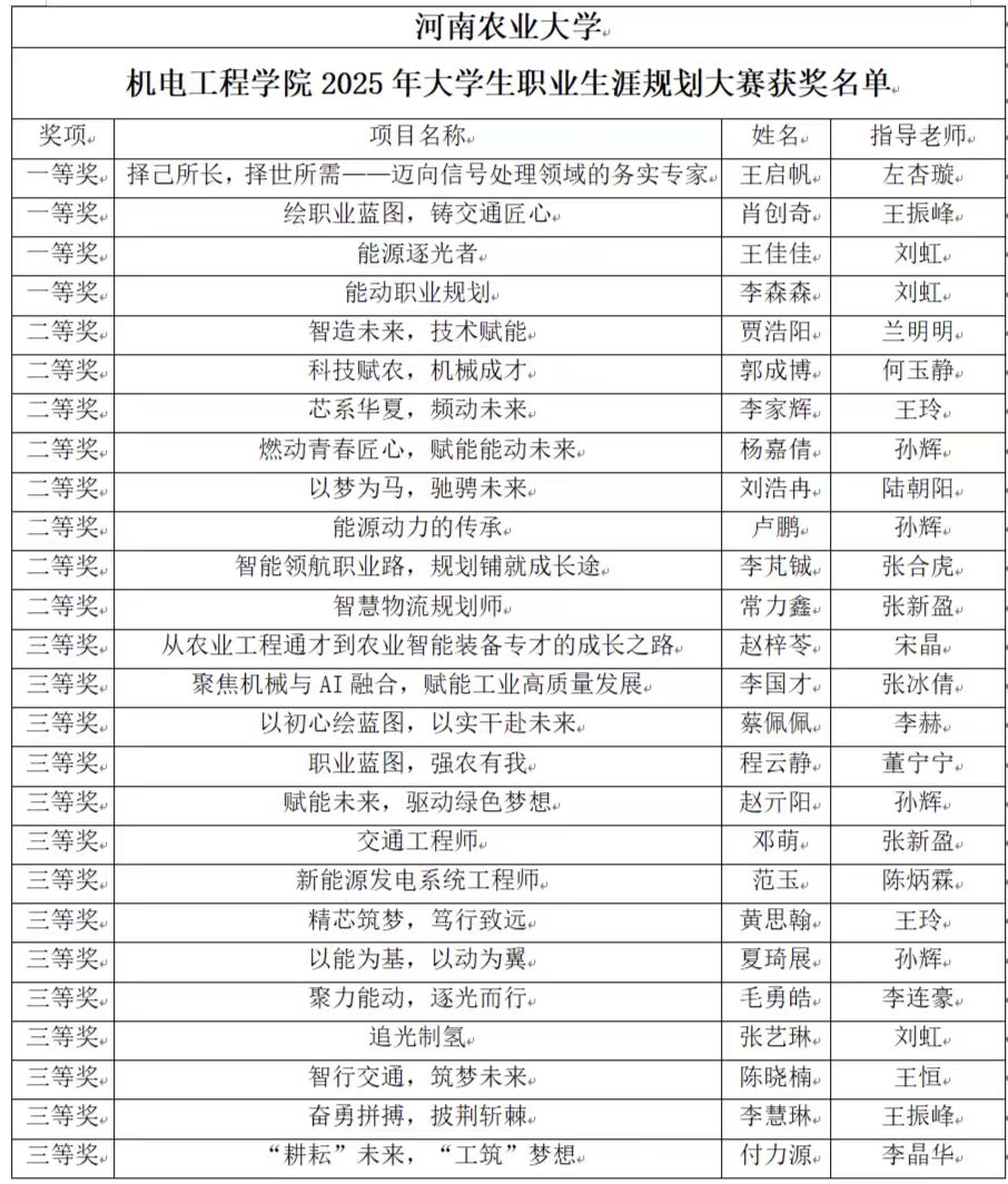 机电工程学院2025年大学生职业规划大赛获奖名单公示