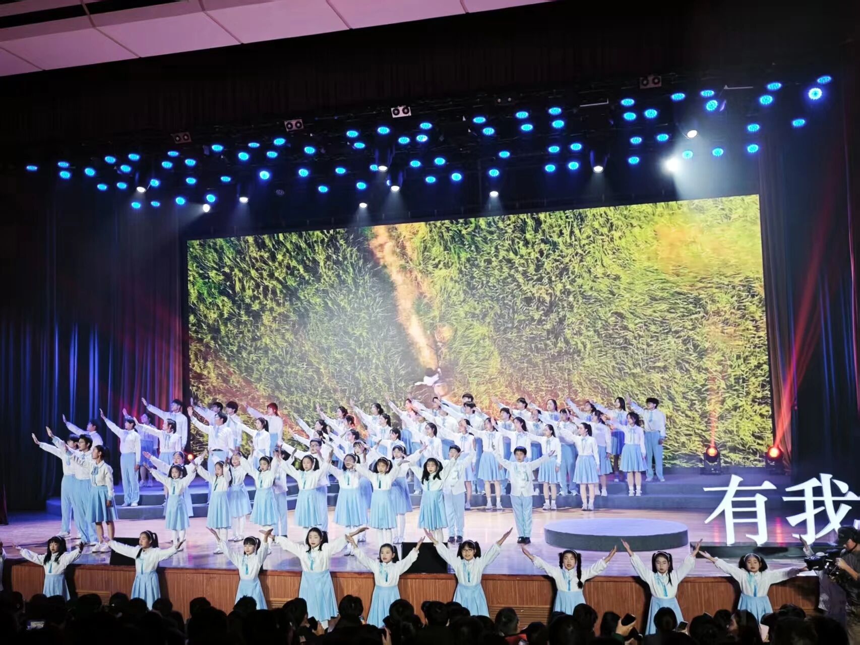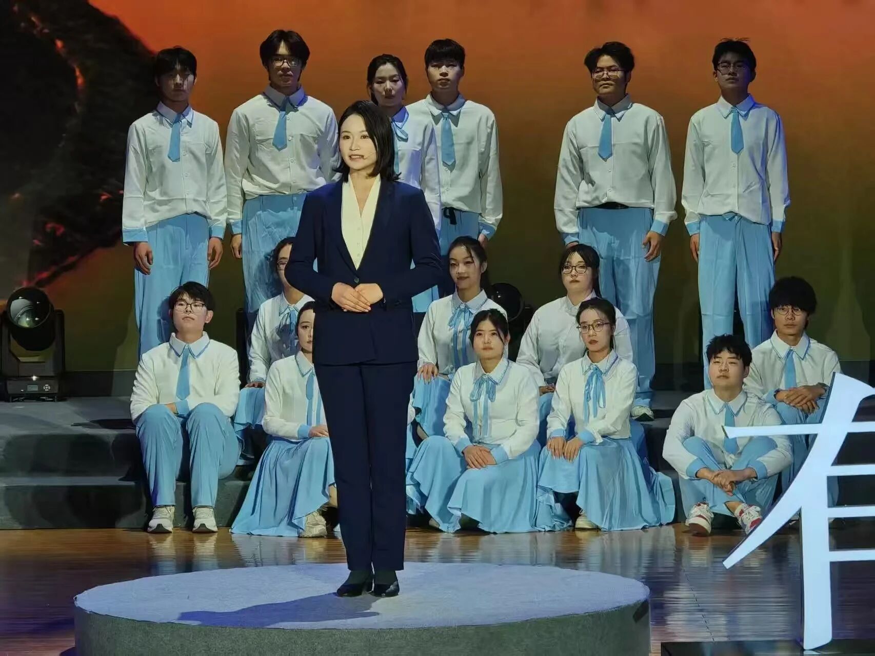 展演现场,灯光璀璨,氛围热烈。在李嘉欣声情并茂的演讲中,我院学子同步演绎的情景剧徐徐展开,与演讲内容紧密呼应。最后,我院合唱队统一着装、精神抖擞地登上舞台,伴随着悠扬的伴奏,熟悉的《有我》旋律缓缓流淌。队员们队列整齐、情感饱满、歌声嘹亮,以层层递进的演唱,将新时代青年的由衷赞美娓娓道来——歌声时而激昂如潮,时而温情似水,每一句都铿锵有力,每一段都直抵人心。整场表演以情景剧启幕,以合唱收束,二者首尾呼应、相得益彰,生动诠释了青年一代肩负时代使命的坚定信念与昂扬姿态,赢得现场掌声如潮,好评不绝。