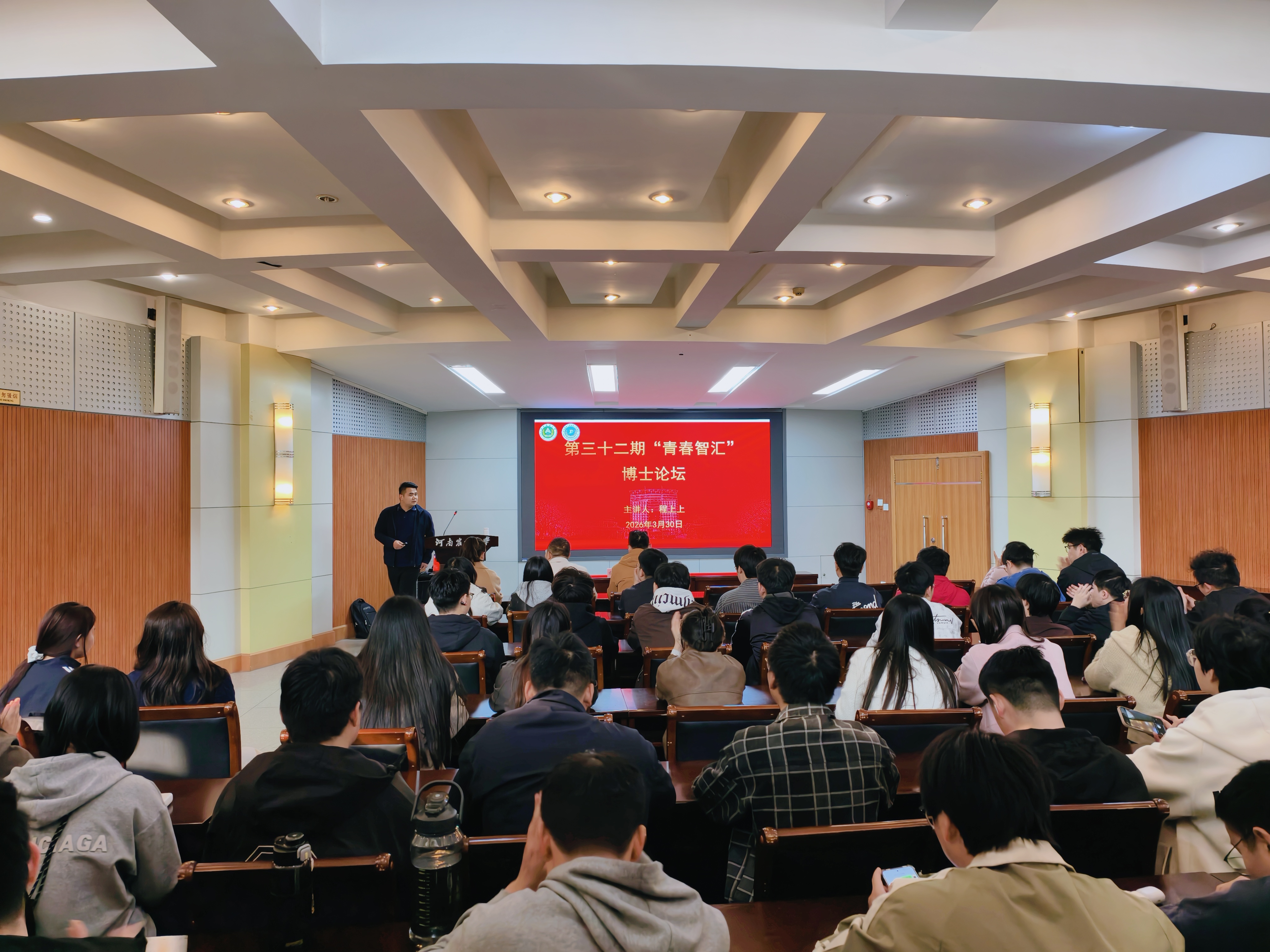 为拓展我院研究生学术视野,营造浓厚的学术氛围,激发青年教师与学生的创新活力,帮助研究生广泛地掌握学科发展前沿信息,根据《河南农业大学研究生“两堂两坛”学术文化活动方案》(校研〔2023〕1号)文件精神要求, 3月30日,由党委研工部主办、我院研究生会承办的第三十二期“青春智汇”博士讲坛在文化路校区百人报告厅开讲。本次活动特邀我院优秀青年博士讲师程上上老师担任主讲人,作主题报告并分享研究生阶段科研学习经验,全体2025级研究生参加讲坛,讲坛由研会主席吴亮衡主持。
