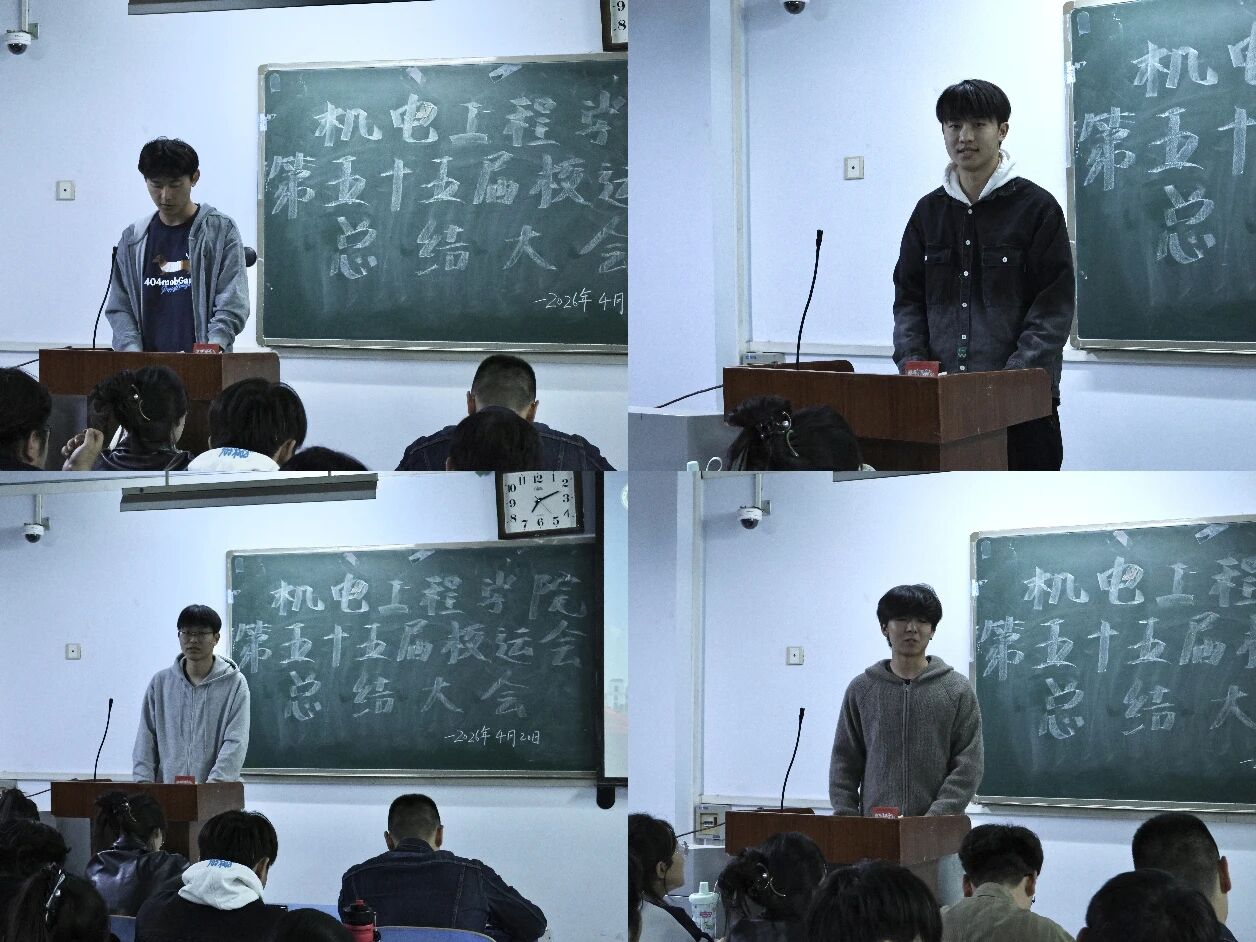 会议伊始,学生党建办公室代表闫鹏程、学生团委办公室代表冯天野、大学生记者团代表赵鹏琦、学生会代表张文韬依次对本次校运会工作进行总结,向全体工作人员、老师及志愿者致谢并肯定大家的辛勤付出;同时指出赛事报名人数不足、部分运动员兼项过多体力不支、训练积极性和纪律性有待加强等问题,并提出后续工作改进方向。