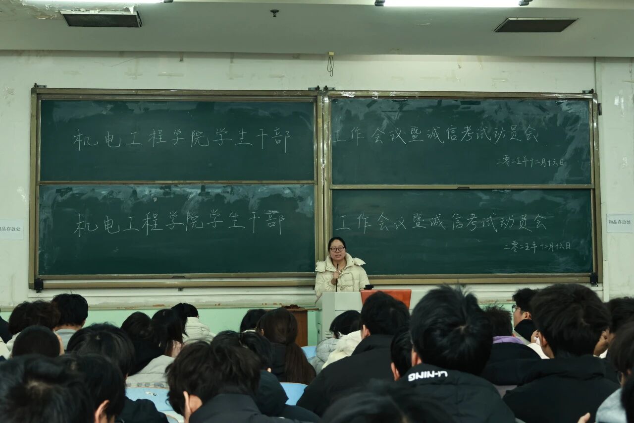12月16日中午,我院在工程楼101召开学生干部工作会议暨诚信考试动员大会,李锦老师、团委副书记王晓楠和年级辅导员孙改革、梁凯凯出席会议,全体班长支书和学生组织成员参加本次会议。